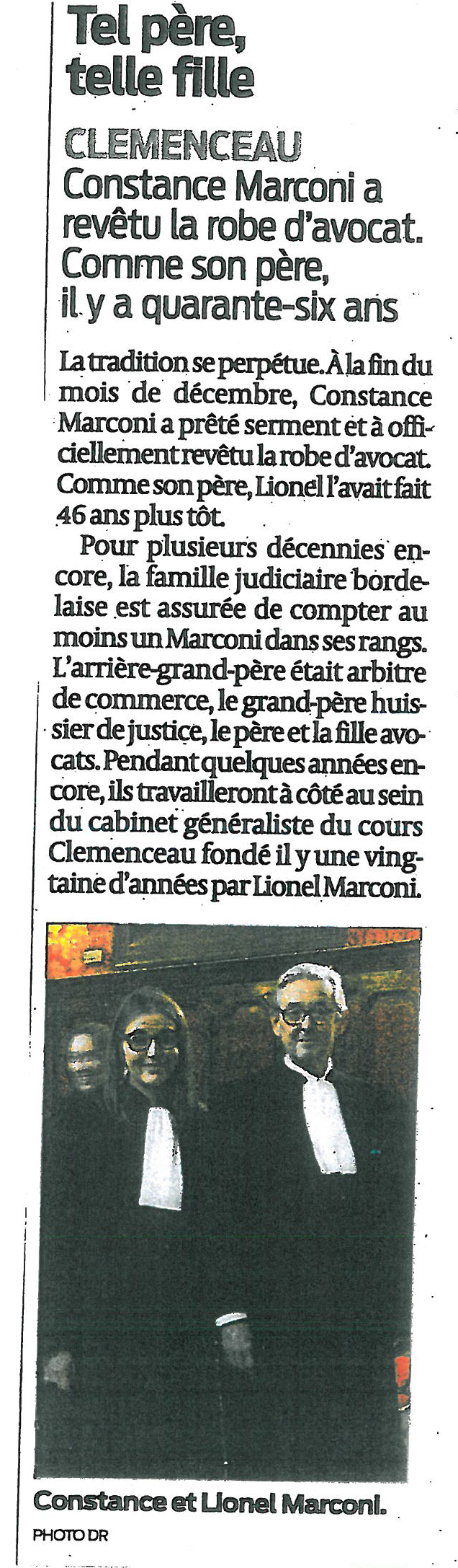 Vous êtes ici : Accueil > Actualités > Revue de Presse > 4ème génération de MARCONI dans la vie judiciaire bordelaise